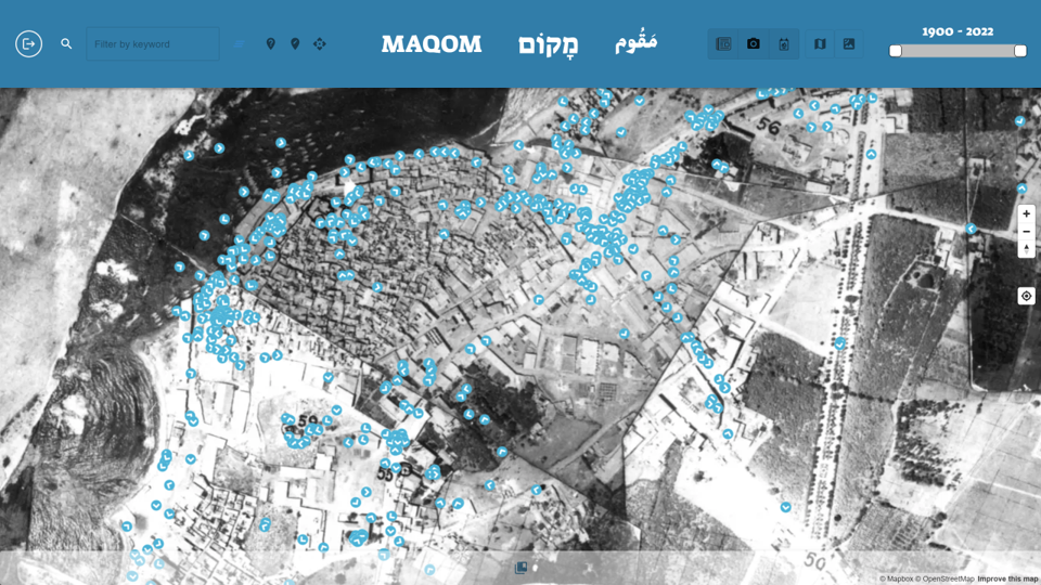כדי להתגבר על שני אתגרים אלה, פיתחנו פלטפורמה מקוונת למיפתוח ולהצגה בשם מקום )MAQOM( הכוללת ממשק חיפוש מבוסס מפה, המאפשר להציג ולסקור ביעילות מגוון מקורות מדיה, כולל תצלומים דיגיטליים. המשתמשים יכולים לאחזר פריטים הקשורים למקום על ידי לחיצה על המפה האינטראקטיבית ולסנן את הפריטים המוצגים באמצעות חיפוש טקסט חופשי או על ידי שינוי אקטיבי של התחום הגיאוגרפי או הטמפורלי של תוצאות החיפוש המוצגות. כדי להתגבר על המגבלות המעשיות המובנות בתיוג גיאוגרפי רחב-היקף של פריטים דיגיטליים, אנו מציעים להתבסס על מיקור המונים ולאסוף את המידע הגיאוגרפי והמילולי ממשתמשים המגיעים מחוץ למוסדות המנהלים את אוספי התצלומים. אמנם גישה זו חשופה יותר לטעויות יחסית לשיטות המיפתוח המוסדיות, אך תיקון רבות מהטעויות האלה יכול להתבצע בקלות באמצעות משוב מהציבור. שיטה זו עדיפה על השארת המיפתוח מאחורי חומות סגורות של סמכות מוסדית, המתבססת תמיד על משאבי אנוש ומומחיות מוגבלים בהשוואה למעורבות הציבור ביוזמות פתוחות של איסוף נתונים.
