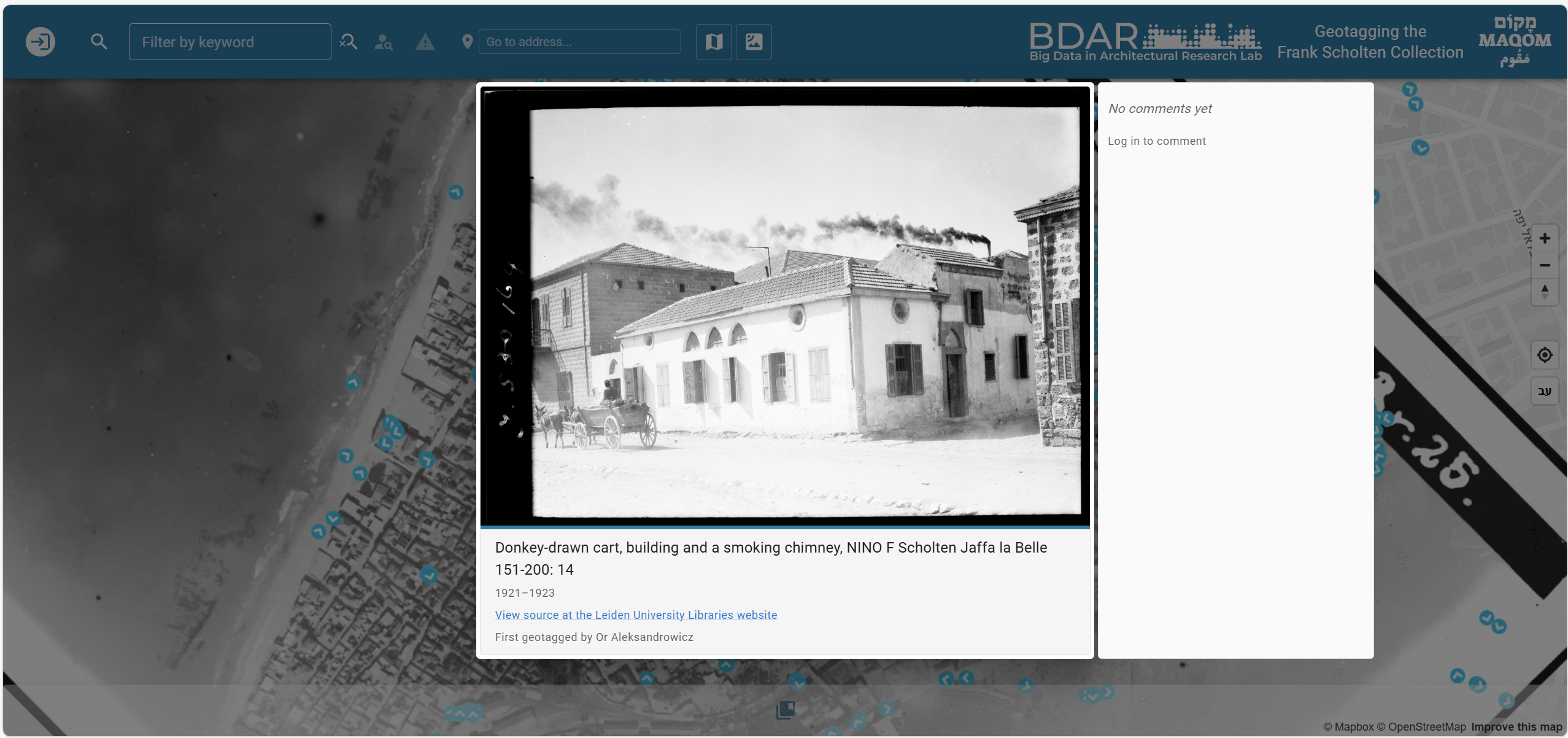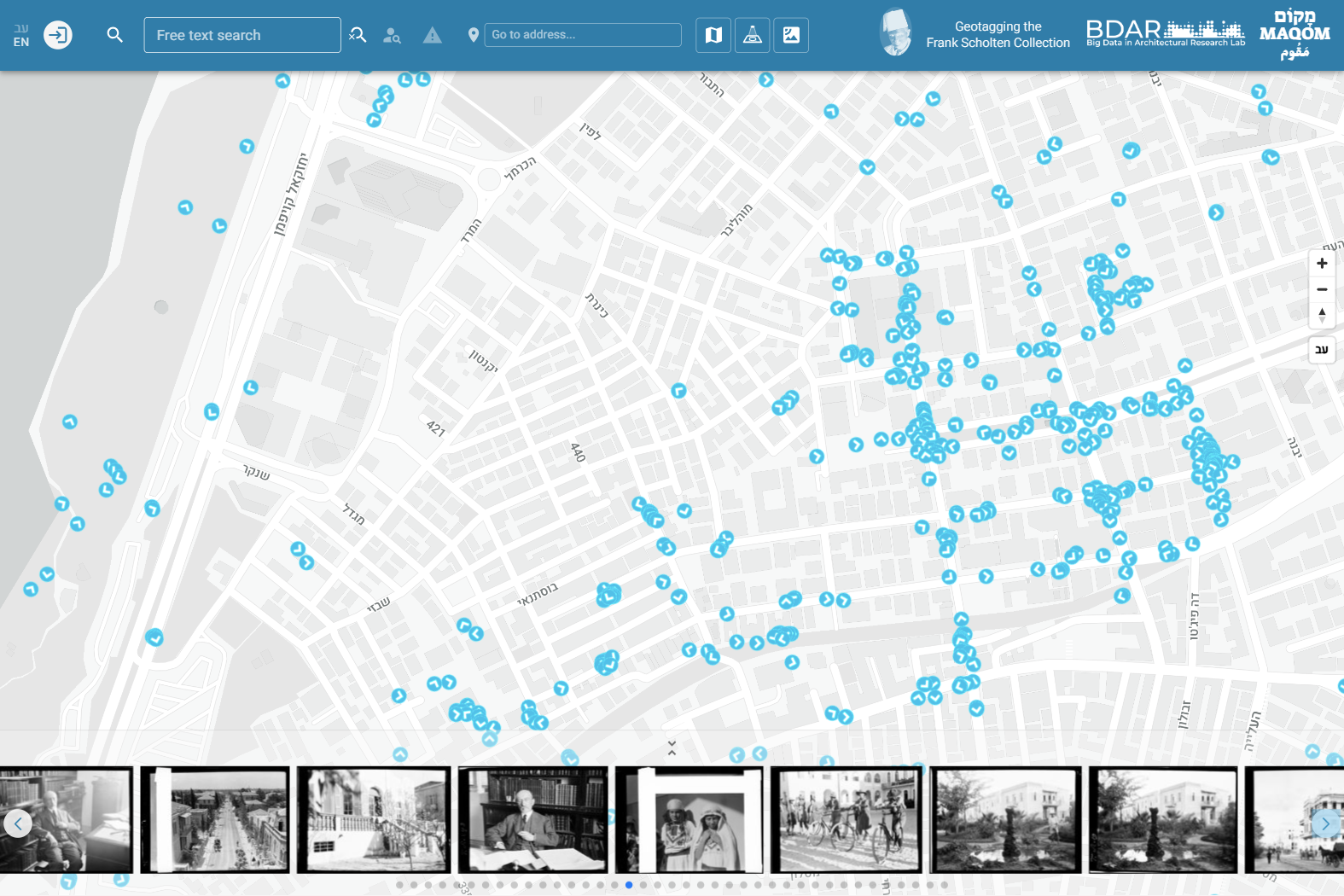 To overcome these two challenges, we have developed an online indexing and presentation platform (named MAQOM) that consists of a map-based search interface capable of simultaneously presenting and efficiently browsing through a variety of media sources, including digitized photographs. The users retrieve the place-related items by clicking on the interactive map and can filter the presented items via free-text search or by actively changing the geographic extents or the temporal range of the presented search results. To overcome the inherent practical limitations of large-scale georeferencing of digitized items, we suggest exploiting the power of crowdsourcing for collecting geographic and verbal place-related input from users from outside the institutions managing the photo collections. While this approach is more prone to errors than institutional indexing methods, open user feedback is expected to correct many of these errors more easily than keeping indexing behind the closed walls of institutional authority, which is always based on limited human resources and limited expertise when compared to the public’s participation in open data collection efforts.