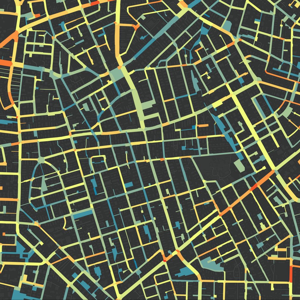 Shade maps can show the amount of shade for a certain time. Yet, for a better understanding of the cumulative effect of urban design on shade availability, shade maps use a daily Shade Index, which quantifies the proportion of solar radiation intercepted before reaching ground level during a typical summer day. The higher the Shade Index (between 0 and 1), the higher the shade provided by the design of an urban setting. Shade Index values can be calculated for any given area, though the shade maps I have produced focus on shade quantification in street segments and neighbourhoods.